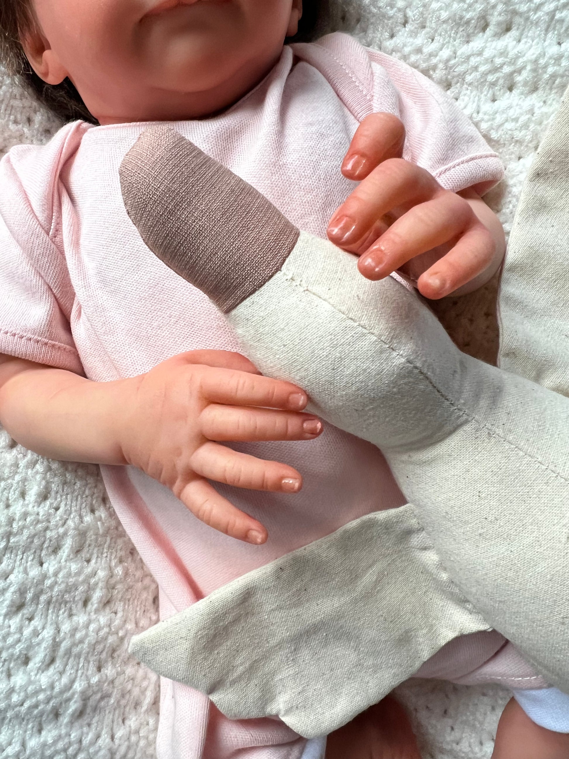 Ayla is painted by hand in soft, natural layers to bring out realistic skin tones, gentle mottling, and a light newborn blush. Her weight is carefully balanced so she feels comforting and natural when held, just like a real little preemie.