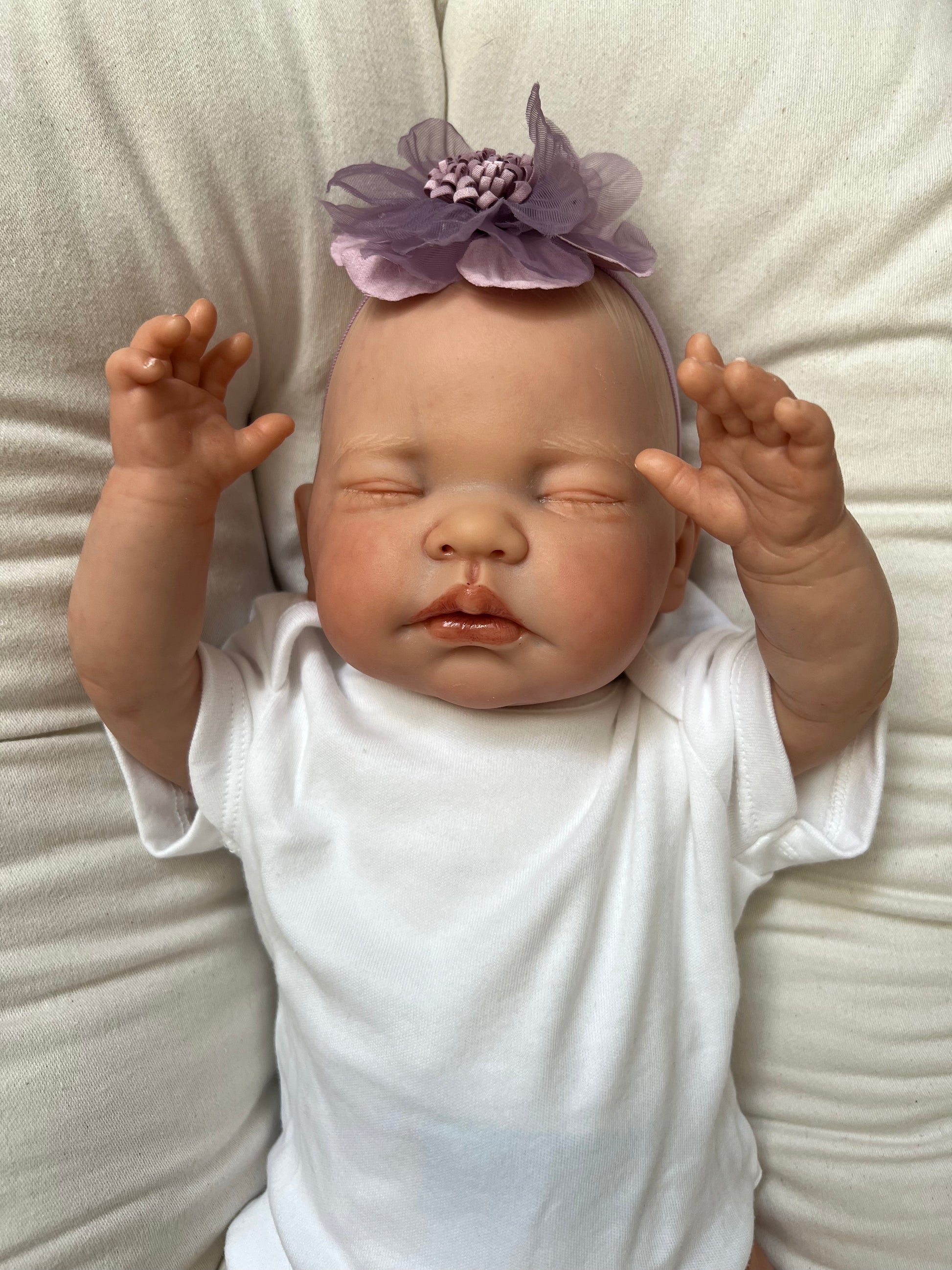 Weighing around 5lbs (2.3kg), Molly Marie features a soft doe-suede body with disc-jointed limbs, allowing gentle posing and natural cuddles. Each baby is hand-finished with care, capturing lifelike skin tones, delicate details, and a comforting new-born feel.