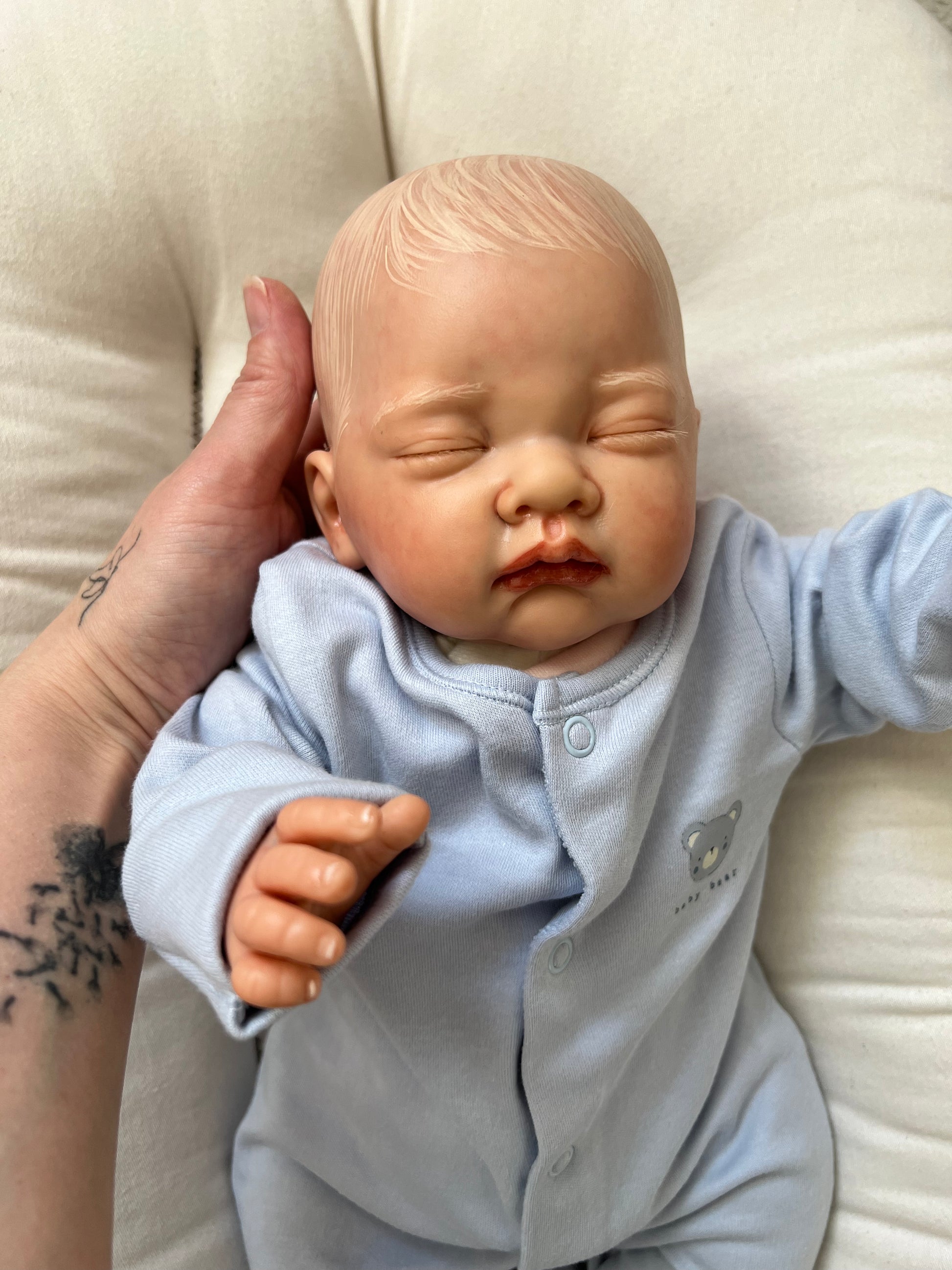 Weighing around 5lbs (2.3kg), this beautiful reborn features a soft doe-suede body with disc-jointed limbs, allowing gentle posing and natural cuddles. Each baby is hand-finished with care, capturing lifelike skin tones, delicate details, and a comforting new-born feel.